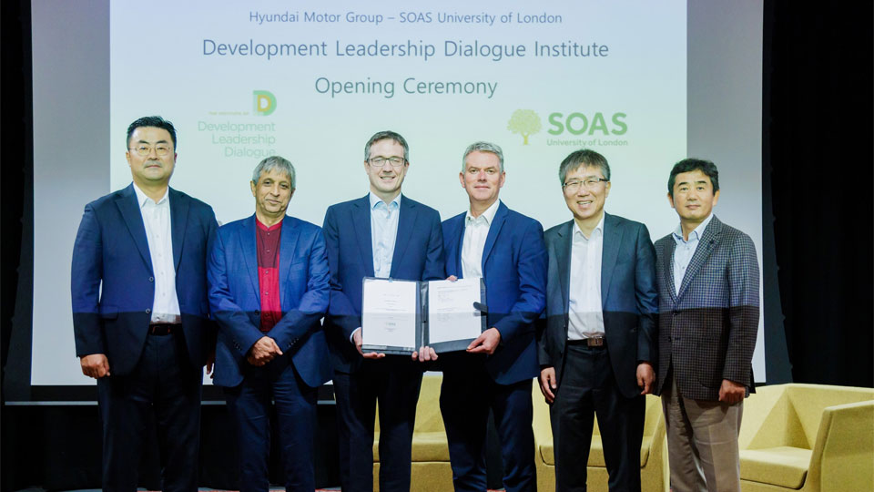 현대자동차그룹과 영국 런던대학교 SOAS는 18일(현지시간) 영국 런던대학교 브루나이 갤러리 극장에서 ‘개발 리더십 대화의 장 연구소’ (‘Development Leadership Dialogue Institute’, 이하 DLD) 개소식 행사를 열었다.