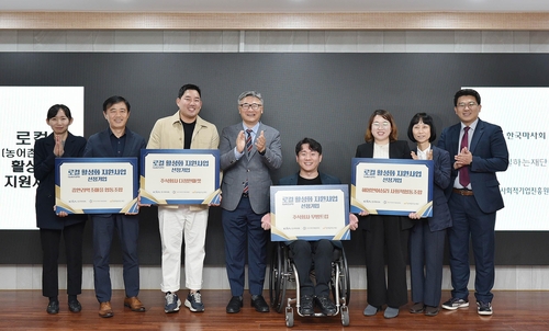한국마사회와 함께일하는재단, 한국사회적기업진흥원이 함께 추진한 '2023년도 로컬(농어촌지역) 활성화 지원사업'(이하 지원사업)에 선정된 4개 기업에 프로젝트 사업비를 전달하는 기금전달식이 19일 오후 함께일하는재단 교육장에서 개최됐다.