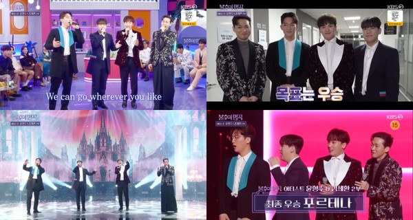 ‘팬텀싱어4’ 준우승팀 크로스오버그룹 포르테나가 첫 ‘불후의 명곡’ 출연에서 우승 트로피의 영예를 안았다.