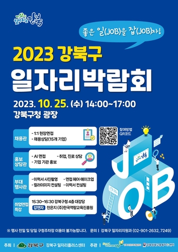 서울 강북구는 오는 25일(수) 오후 2시 강북구청 광장에서 구인구직 만남의 장인 '2023 강북구 일자리박람회'를 개최한다.