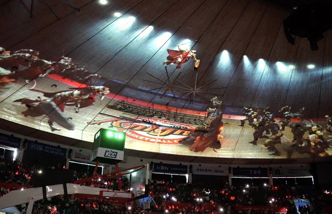 버추얼 휴먼 기술을 통해 기사단의 모습으로 재현된 서울SK나이츠 선수들과 코치진이 홈 개막전 만원 관중을 열광케 했다.