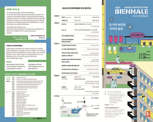 2023 대구건축비엔날레가 '도시의 비전과 가치의 공유'란 주제로 11월 1일(수)부터 8일(수)까지 8일간 수성못 상화동산에서 개최된다.