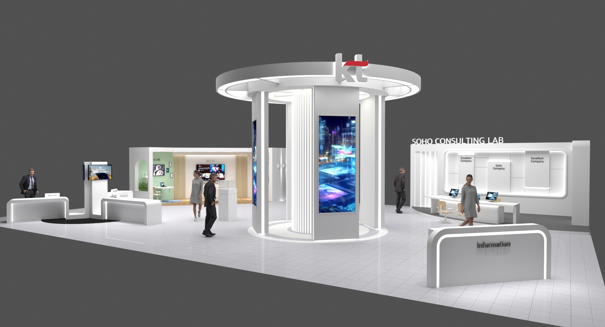 KT는 ‘새로운 고객가치를 제공하는 디지털 혁신 파트너’를 주제로, KT의 디지털 플랫폼을 중심으로 디바이스와 고객을 연결하여 다양한 서비스로 융합, 확장된 고객가치를 제시한다. 전시관 내부는 KT의 인공지능(AI), 빅데이터(BigData) 등 핵심 역량을 토대로 개인·소상공인·기업고객을 위한 디지털 패러다임의 전환을 이끌어내는 모습을 체감할 수 있도록 방사형 공간으로 구성됐다.