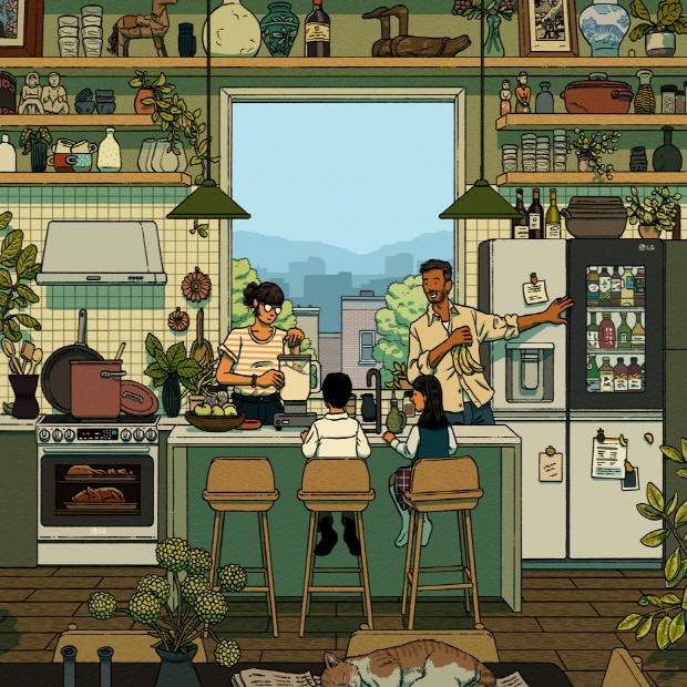 일리야 밀스타인은 섬세한 디테일이 특징인 작가로 구찌, 구글 등 여러 글로벌 브랜드와 협업하고 있는 일러스트레이터다. 이번에는 LG전자 생활가전과 함께 하는 일상을 일러스트 작품으로 표현했다.