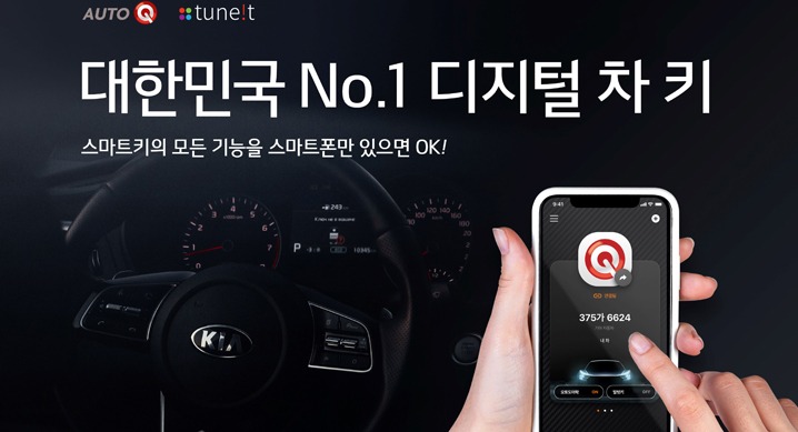 ‘더 드라이빙 앱 키’는 기존 자동차 스마트키와 동일한 기능을 제공하되 스마트키를 소지하지 않아도 스마트폰 앱으로 도어 잠금 및 해제, 트렁크 열림 등을 제어할 수 있는 오토큐의 브랜드 상품으로, 현대ㆍ기아자동차 사내스타트업으로 시작해 2019년 분사한 ‘튠잇(Tuneit)’이 개발했다. (※ 자동차 스마트키 사양에 따라 기능 제한)