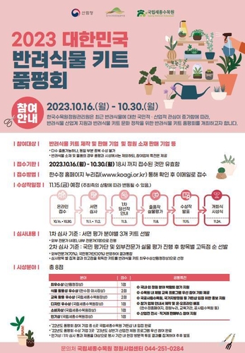 한국수목원정원관리원은 오는 10월 30일까지 '2023 대한민국 반려식물 키트 품평회' 참여기업을 모집한다.