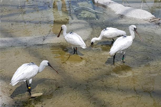 멸종위기종복원센터는 이번에 방사될 저어새의 생존율을 높이기 위해 방사 전 비행 및 먹이사냥, 대인기피 등 자연적응 훈련을 실시하고, 저어새의 위치확인과 이동경로 분석 등의 연구를 위해 가락지와 위치추적기를 부착했다.