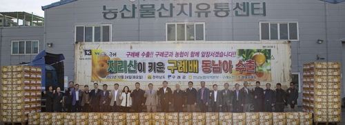 전남 구례에서 생산된 배가 수출길에 올랐다.