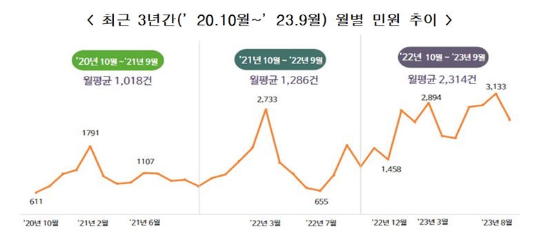 이는 권익위가 지난 2020년 10월부터 올해 9월까지 국민신문고, 지방자치단체 민원창구 등에 접수된 민원 빅데이터를 종합적으로 분석한 결과다.