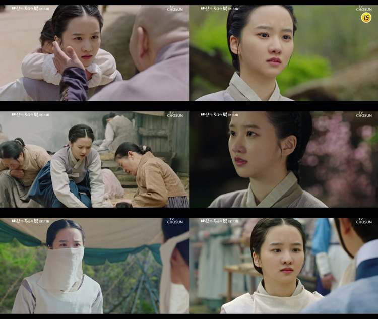 올곧은 민자영의 신념은 13화에서도 이어졌다. 역병의 주범이라며 천중을 체포하려는 군사들의 위협에도 천중을 위해 목소리를 내고, 수구문 밖으로 격리될 위기에 처하자 천중을 원망하는 빈촌 사람들을 막아서는 등 천중을 돕기 위해 노력한 것.