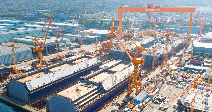 한화오션의 제 1도크는 길이 530미터, 폭 131미터에 달하는 세계 최대 규모다. 여러 종류의 다양한 선박과 해양플랜트를 한꺼번에 건조할 수 있는 것으로 유명하다. 그런 도크에 가장 수익성이 좋은 LNG운반선 4척이 동시에 건조되고 있다. 이는 한화오션이 지속해서 추진해온 경영 정상화 노력을 상징하는 모습이라고 할 수 있다.
