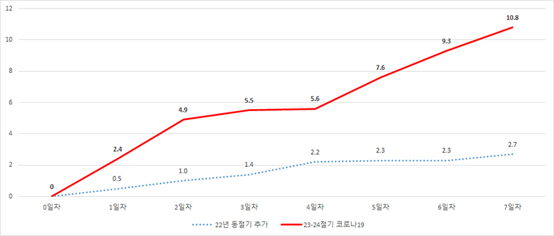 한편 질병청은 10월 3주 코로나19 신규 양성자 7348명 중 65세 이상 고령층의 비중은 30.5%로, 고위험군의 감염이 지속적으로 높게 나타남에 따라 각별한 주의를 당부했다.