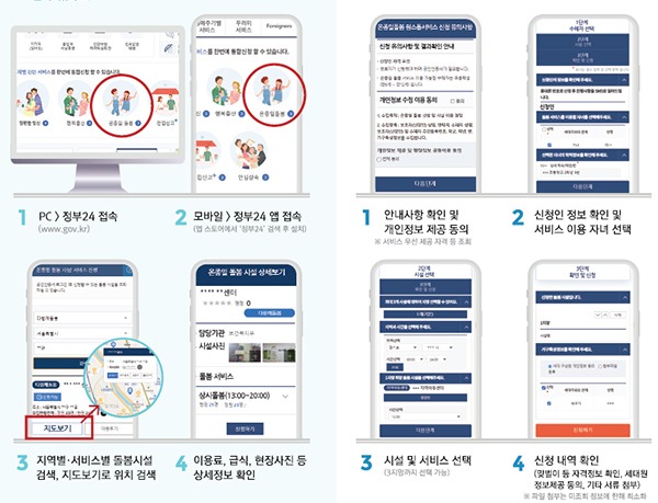 정부대표포털 ‘정부24’(http://www.gov.kr)에서 전국 1만여 개의 돌봄시설 정보를 종합적으로 검색하고, 신청하며, 결과까지 확인할 수 있게 됐기 때문이다.