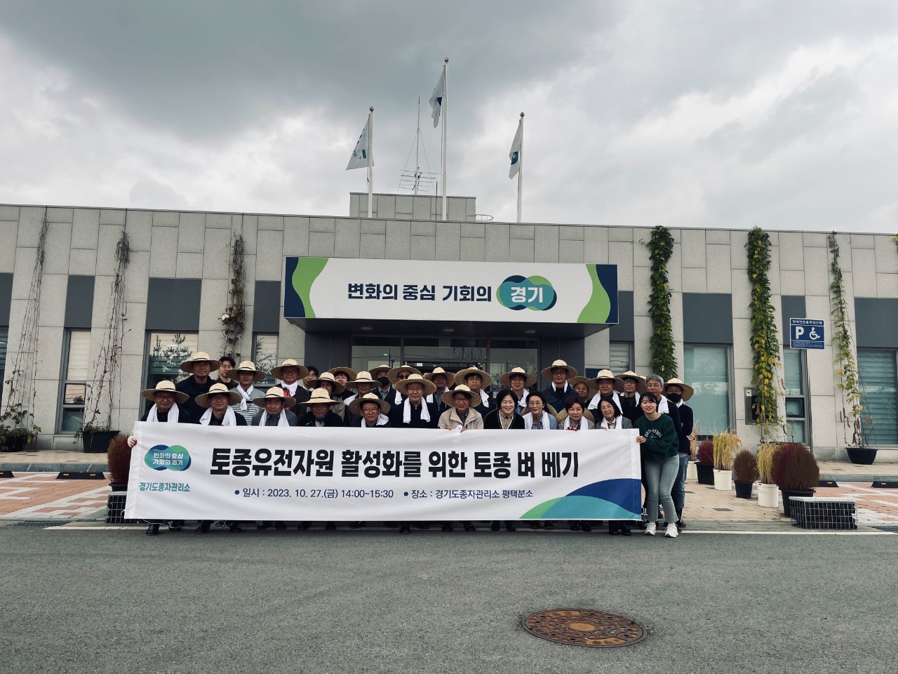 경기도는 27일 평택시 고덕면 소재 경기도종자관리소 평택분소에서 ‘토종 벼 베기 시연 행사’를 열었다.