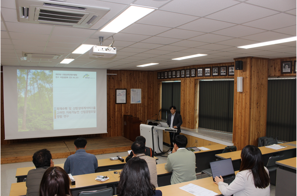 연구사업 설명회에는 인근 화촌면 풍천리 이장, 부녀회장, 청년회장 등 마을 대표자들을 초청하였으며, 필요한 목재를 지속적으로 생산하면서, 산림생태계에 부정적 영향을 최소화할 수 있는 친환경적 산림순환경영모델 개발 연구사업을 소개하였다. 이어진 지역주민 간담회에서는 참석자들의 목재수확에 대한 의견을 듣고, 가리산 산림순환경영모델림 운영 과정에서 지역주민의 참여 방안을 모색하였다.
