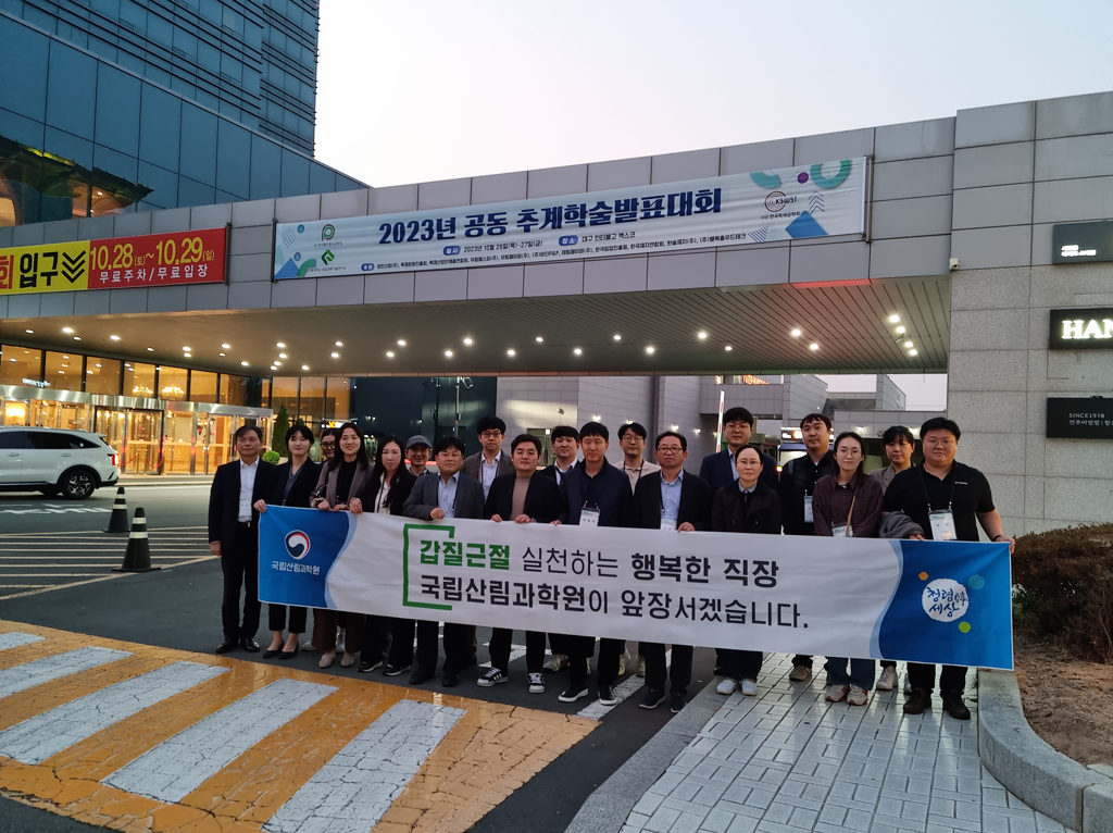 아울러, 연구성과 발표와 함께 청렴한 공직사회를 위한 ‘반부패ㆍ청렴실천 및 갑질근절 캠페인’도 전개하며 국산 목재 이용 연구와 함께 청렴문화의 정착 및 공직기강 확립을 다짐하였다.