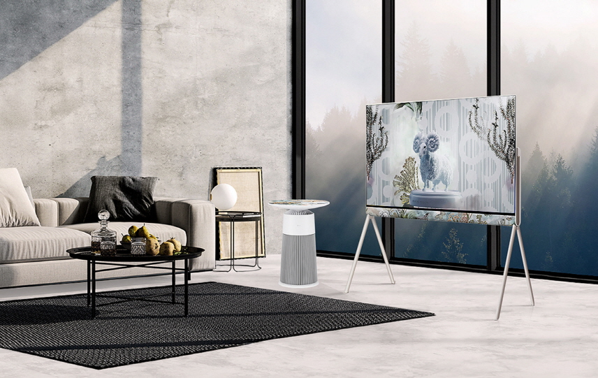 LG전자는 설치 공간의 분위기를 살리는 고급스러운 디자인과 차별화된 성능을 두루 갖춘 가구형 공기청정기 ‘LG 퓨리케어 오브제컬렉션 에어로퍼니처’의 상단 테이블에 모오이 디자인을 적용했다.