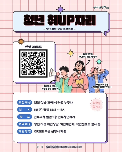 '청년 취UP(업)자리'는 연수구 취업정보센터와 연계해 직업상담사를 배치하는 등 전문적 취업지원서비스를 제공하고 청년 구직활동을 지속해서 지원하기 위해 마련됐다.