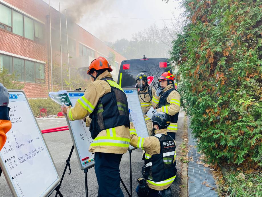 훈련은 다수사상자 구급대응, 전기차 화재발생 등 복합재난 상황을 부여해 ▲선착대장 지휘 ▲현장대응단장 지휘권 선언 및 현장지휘 ▲현장안전점검관 활동 ▲현장대원 임무수행으로 진행됐다.