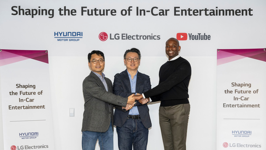 현대자동차∙기아는 지난 10월 31일(현지시각) LG전자, 유튜브와 함께 ‘차량 내 엔터테인먼트 고객경험 증진’을 위해 협력하기로 하고, 차량 인포테인먼트 시스템을 통해 더욱 다양한 영상 스트리밍 서비스를 제공한다고 밝혔다.