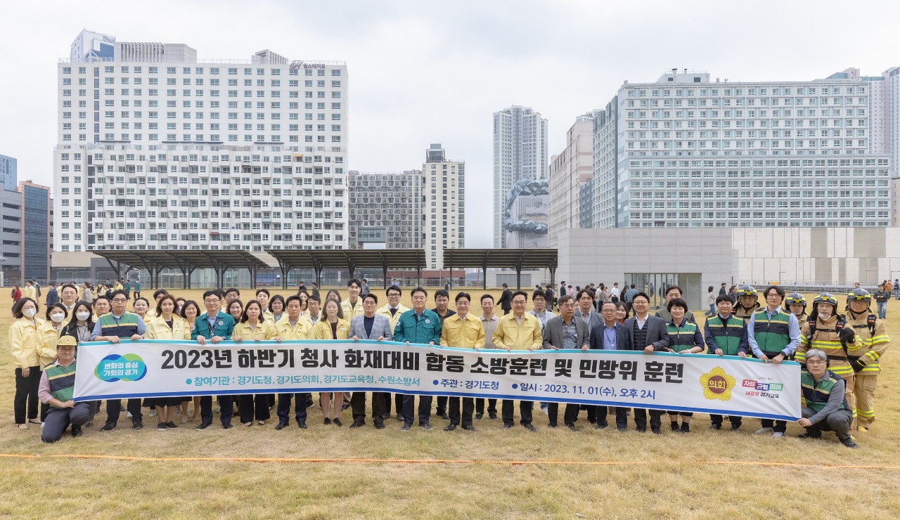 경기도는 경기도의회, 경기도교육청, 수원소방서와 함께 1일 2023년 청사 화재 대비 합동 소방훈련을 실시했다.