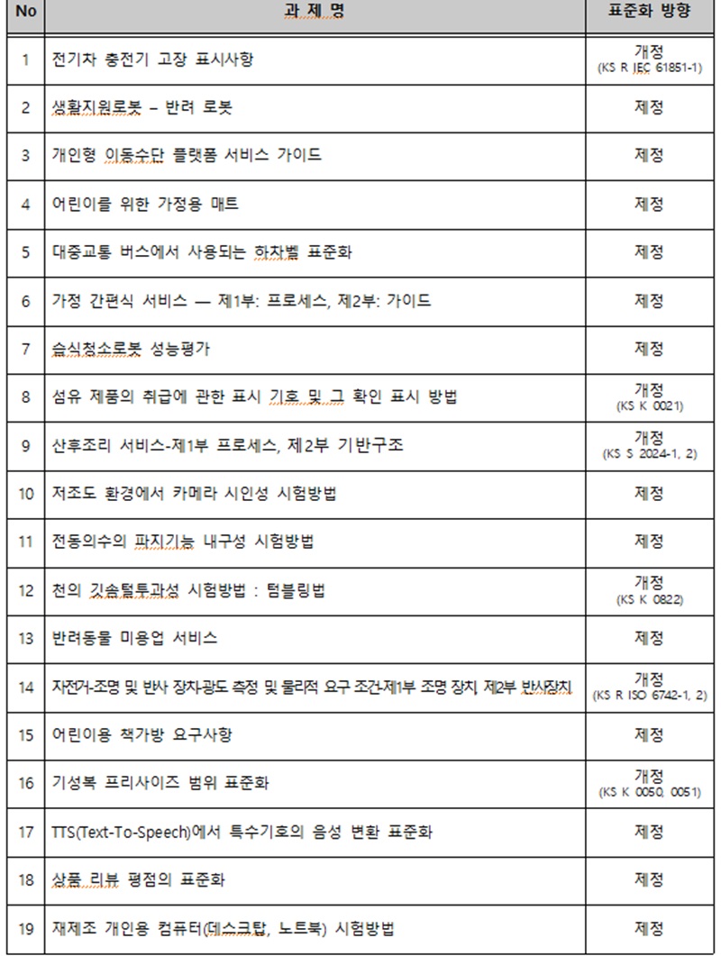 일상에서 사용하는 로봇, 전기차 충전기, 개인형 이동수단 플랫폼 등 제품과 서비스에 대한 품질 확보와 통일화를 통해 생활편의를 높일 방침이다.