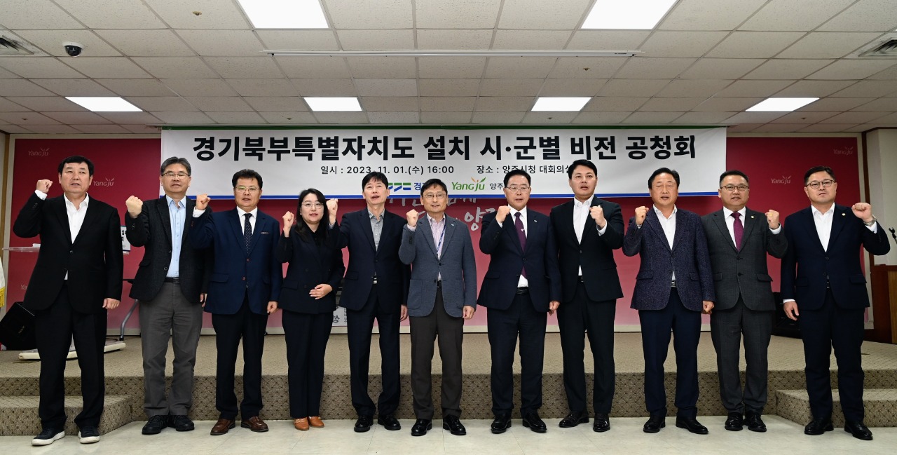 경기도는 1일 양주시청 대회의실에서 강수현 양주시장, 한상민 양주시의회 부의장, 안기영 양주시 국민의힘 당협위원장, 오후석 경기도 행정2부지사를 비롯한 시의원, 지역주민 등 100여 명이 함께한 가운데 ‘경기북부특별자치도 설치 추진 시군별 비전 공청회’를 진행했다.