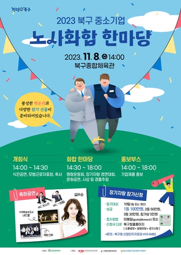 광주시 북구가 오는 8일 한국산업단지공단 광주지역본부, 첨단산업단지경영자협의회, 본촌산업단지관리공단과 함께 '중소기업 노사 화합 한마당' 행사를 연다고 1일 밝혔다.