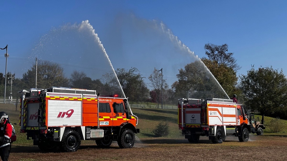 또한, 산불진화 기계화시스템의 운영방법 숙달, 기관별 역량 비교와 정보 교류 기회를 제공하기 위해 도내 15개 시군 산불전문예방진화대 150명이 참가하는 산불 지상진화 경연대회도 함께 실시됐다.