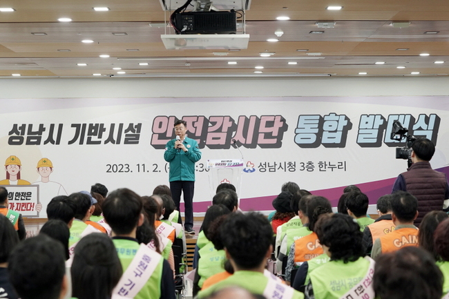 성남시는 2 일 위기관리 대응력을 강화해 안전사고를 예방하기 위해 ‘ 성남시 기반시설 안전감시단 ( 이하 안전감시단 )’ 통합 발대식을 개최하고 본격 활동에 돌입했다고 밝혔다.