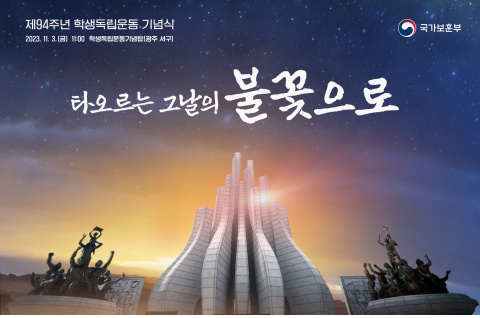 국가보훈부는 2일 일제의 차별과 불의에 항거해 일어난 학생독립운동을 기억하고 선열들의 숭고한 독립정신을 계승하기 위해 제94주년 학생독립운동 기념식을 오는 3일 오전 11시 광주광역시 서구에 있는 학생독립운동기념탑에서 거행한다고 밝혔다.