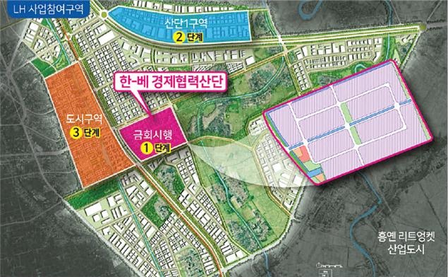 LH는 지난달 29일 해외진출 희망 기업 지원을 통한 상생협력 및 동반성장을 목표로 추진 중인 한-베트남 경제협력 산업단지(이하 ‘경협산단‘) 조성사업 407만㎡(123만평)의 개발계획을 베트남 정부로부터 최초로 승인받았다고 2일(목) 밝혔다.