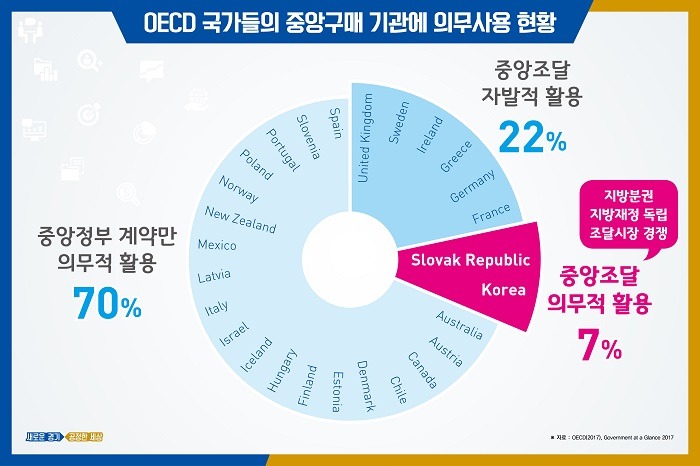 김 국장은 “OECD 국가 중에 중앙조달을 강제하는 나라는 한국과 슬로바키아뿐”이라며 “공정한 조달시스템은 나라장터와 싸우기 위한 것이 아니라 독과점의 폐해를 개선하고, 불공정한 시장구조를 바꾸기 위한 것”이라고 추진 배경을 설명했다.