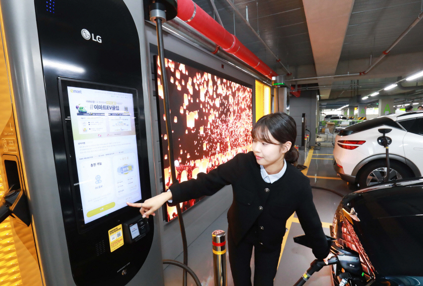 LG전자가 국내 대형 유통업체 이마트와 손잡고 전기차 충전소 구축에 나섰다.