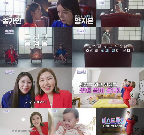 특히 ‘올 겨울 세상을 꺾고 뒤집을 조선의 셋째 딸이 온다’라는 문구는 TV CHOSUN이 다시 써내려갈 트로트의 새 역사를 기대케 한다.