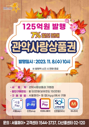 이번 상품권 발행 할인율은 7%로, 할인율에 대한 보전금 전액은 관악구가 부담한다.