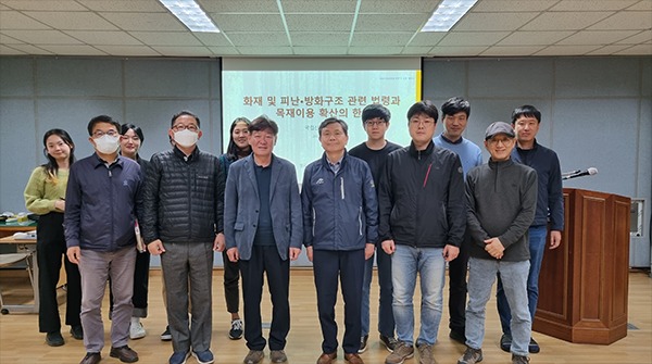이번 세미나에서 전북대학교 박희준 교수는 국내 소방법과 건축법에서 다루고 있는 목재의 이용과 관련된 주요 내용과 목재 이용 관련 제한사항들을 소개하였다. 참석자들은 해당 법률들을 명확히 분석하여, 목재이용 확산에 걸림돌이 되는 법적·행정적 규제들을 발굴하여 적극행정 실현을 통해 개선하기 위해 함께 노력하기로 다짐하였다.