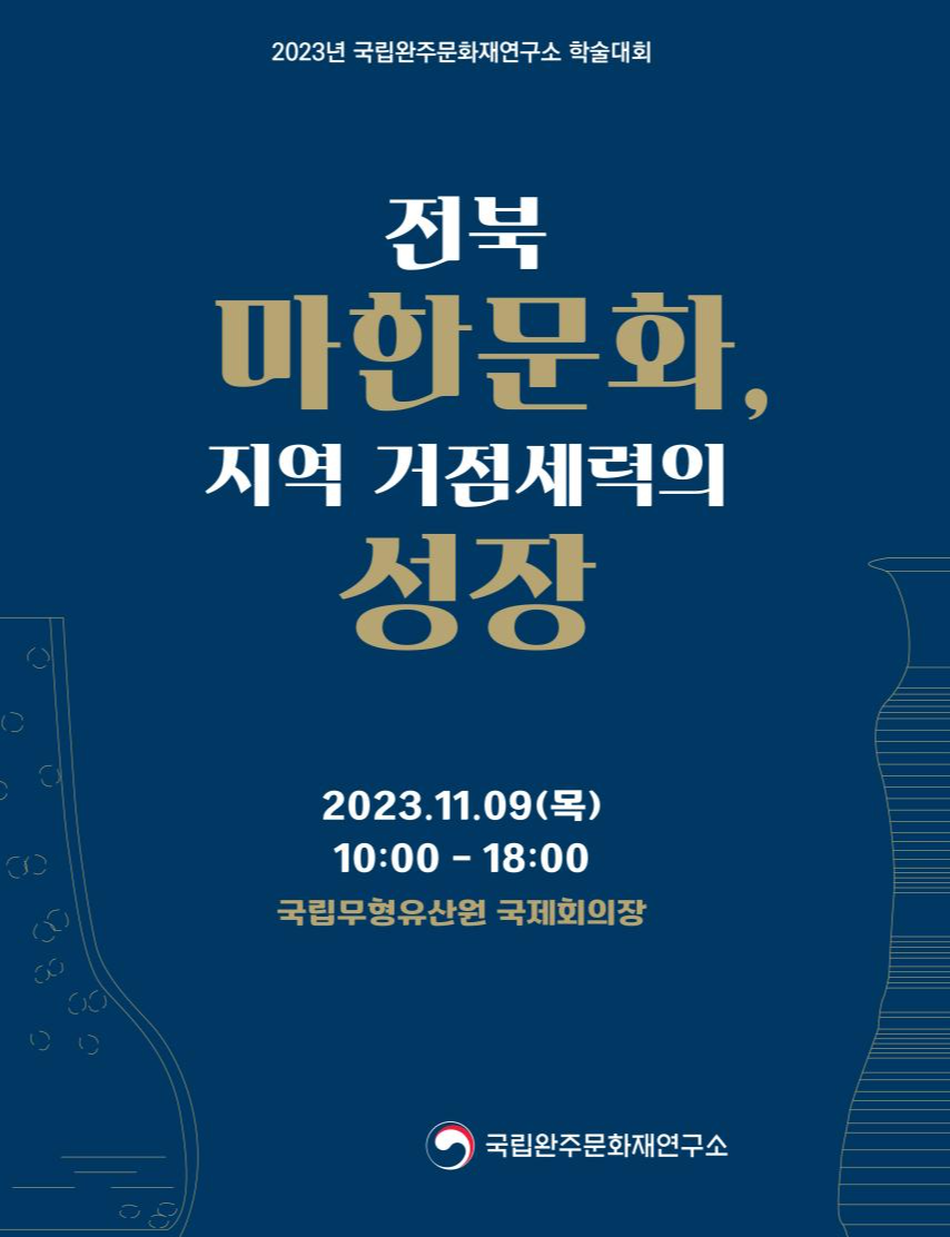 문화재청 국립문화재연구원 국립완주문화재연구소는 11월 9일 오전 10시 국립무형유산원(전북 전주시)에서 ‘전북 마한문화, 지역 거점세력의 성장’을 주제로 학술대회를 개최한다.