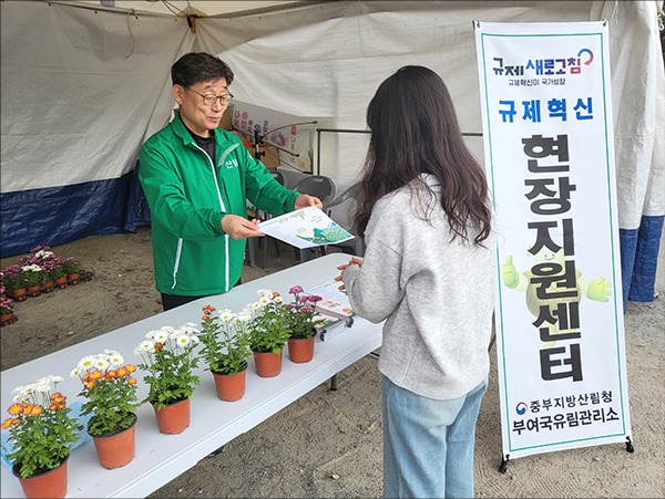 부여국유림관리소는 11월 3일 충남 부여군 궁남지 일원에서 방문객을 대상으로 규제혁신 현장지원센터를 운영했다.