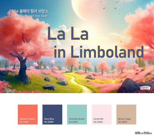 삼화페인트공업㈜ 컬러디자인센터는 2024년을 위한 올해의 컬러뉘앙스 키워드를 '라라 인 림보랜드(La La in Limboland)'로 정하고 다섯 가지 컬러를 선정했다.