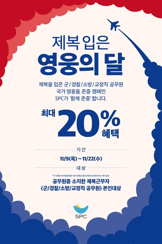 SPC는 계열사 전 매장에서 제복근무자(MIU, Men In Uniform)에게 혜택을 제공하는 '제복 입은 영웅의 달' 프로모션을 오는 9일부터 진행한다고 밝혔다.
