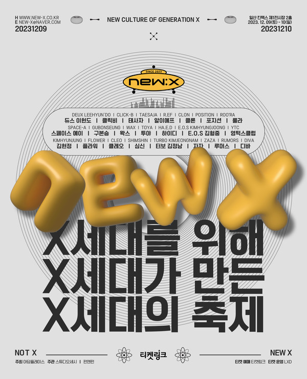 ‘뉴엑스 뮤직 페스티벌(NEW X)’은 X세대의 새로운 놀이 문화를 정착시키고자 마련된 공연으로, 듀스 이현도, 태사자, 클론, 김현정, R.ef(알이에프), 구본승, 플라워, 터보 김정남, 왁스, 스페이스 에이, 클릭비 등 90년대 스타들이 출연한다.