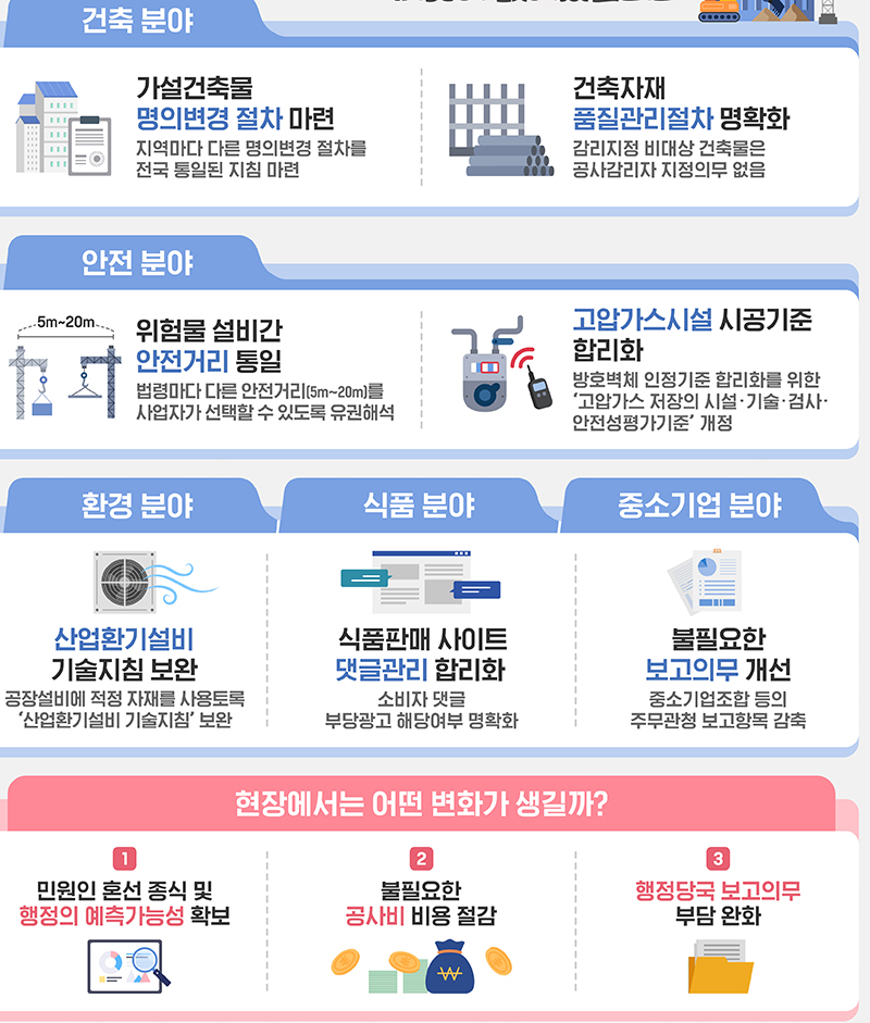 이번 그림자 규제 혁파 과제는 건축, 안전, 환경, 식품, 중소기업 등 5개 분야 7개 세부과제로 구성됐다.