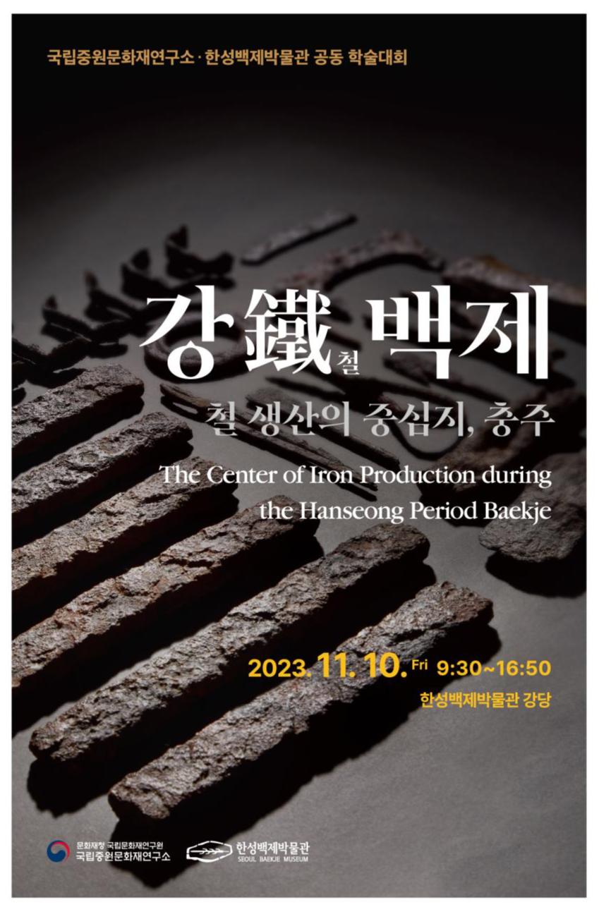 문화재청 국립문화재연구원 국립중원문화재연구소는 한성백제박물관과 함께 오는 10일(금) 오전 9시 30분 한성백제박물관(서울 송파구) 강당에서 「강鐵철백제, 철 생산의 중심지 충주」를 주제로 학술대회를 공동 개최한다.