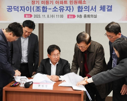 마포구(구청장 박강수)는 아현제4구역 주택재개발정비사업조합(이하 '조합')과 소송을 진행 중이던 토지 등 소유자 2인이 소송을 취하하고 11월 8일, 조합과 '공덕자이 미등기 해결을 위한 합의서'를 작성했다고 밝혔다.