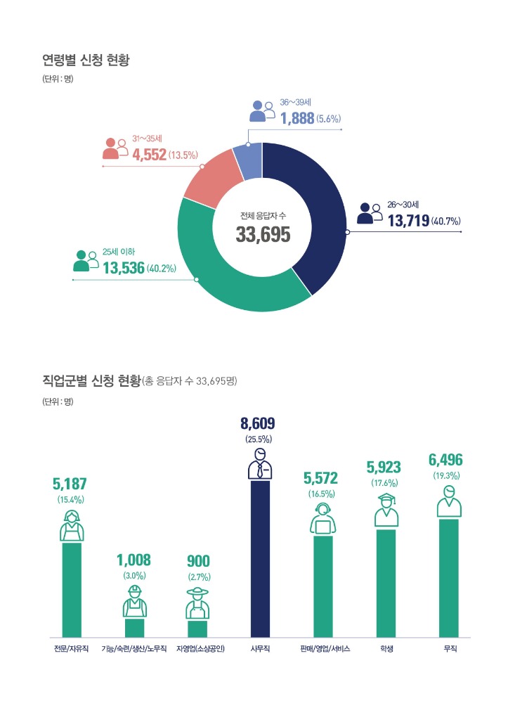 여성 신청자(62.3%)가 남성보다 더 많고, 연령대는 30세 이하(80.9%)가 다수를 차지했다.