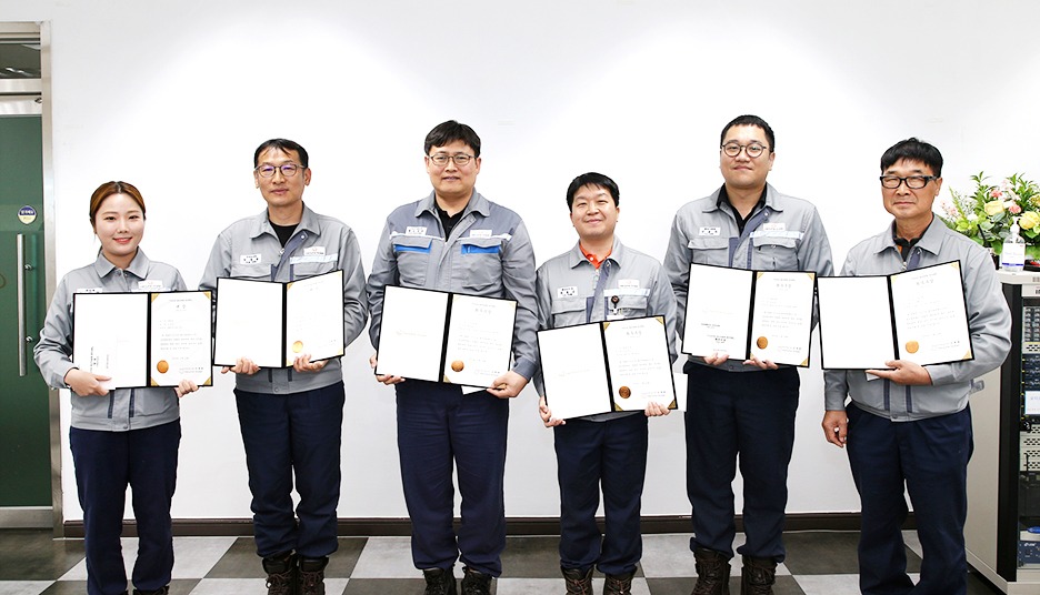 ≫ 지난 10일 한화오션 거제사업장에서 열린 자동화 경진대회 시상식에서 수상자들이 기념 촬영을 하고 있다.