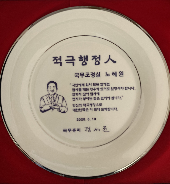 최우수상으로 적극행정 접시를 받은 노혜원 과장은 “총리께서 평소 강조하신 접시 이야기를 생각해보면 무척이나 특별하고 의미있는 선물”이라면서 “접시를 깨더라도 새롭게 도전하고 먼지가 쌓이지 않게 성실하게 근무해 나갈 것”이라고 말했다.