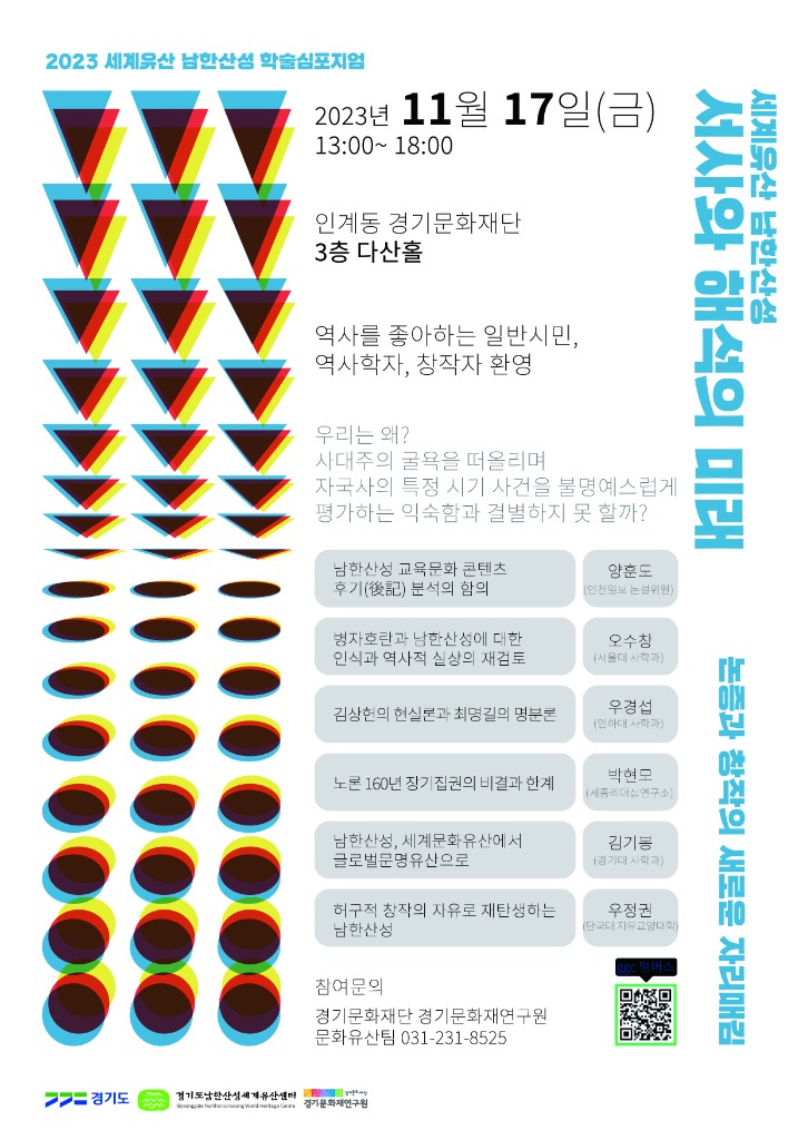 경기도와 경기문화재단이 17일 경기문화재단 다산홀에서 ‘세계유산 남한산성, 서사와 해석의 미래-논증과 창작의 새로운 자리매김’이라는 주제로 학술 심포지엄을 개최한다.