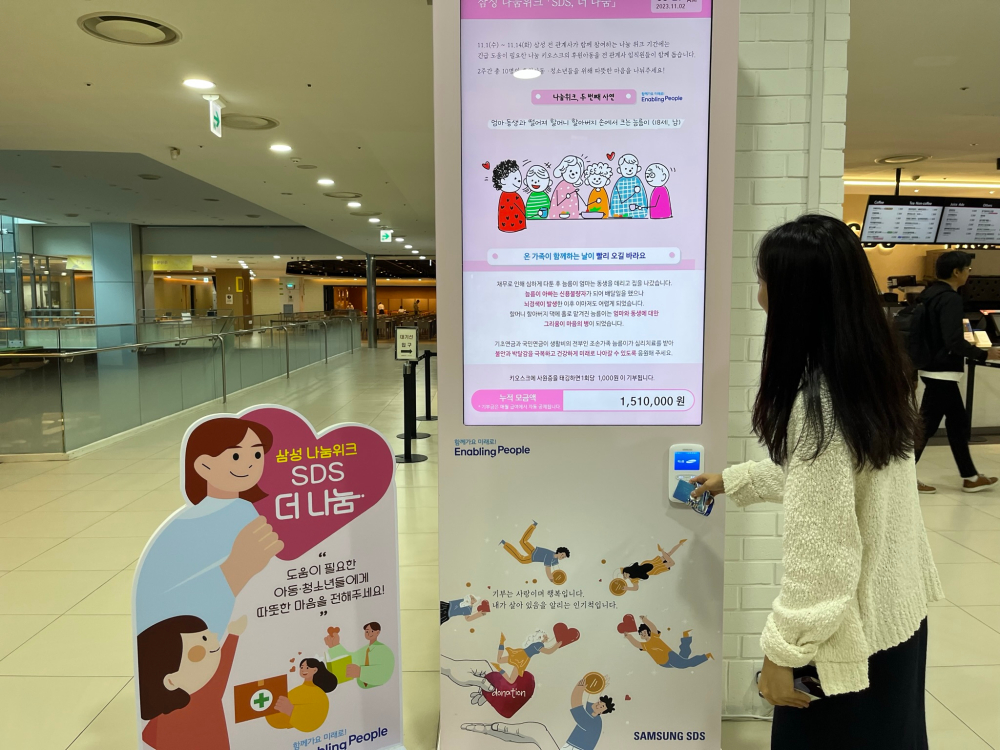 2주간 삼성 관계사 임직원들이 나눔키오스크로 기부한 총액은 약 2억원이다. 평시 2주 평균 모금액(8,600만원)의 2배를 넘는 금액이다.